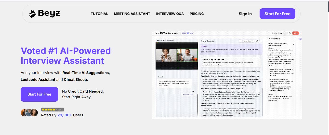 Beyz AI is a real-time AI interview and meeting assistant that listens, understands, and suggests personalized answers to help you perform better anywhere.