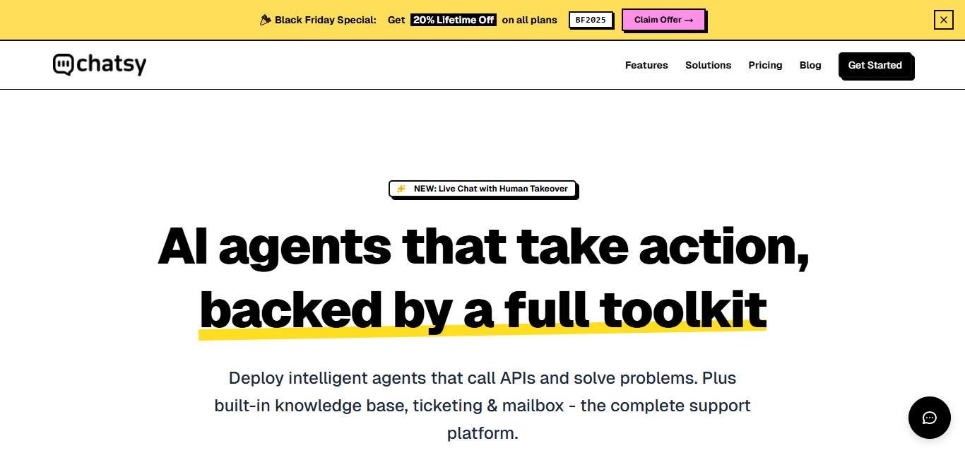 Chatsy is an AI agent platform with live chat and human takeover, helping businesses automate support while keeping humans in control when it matters.