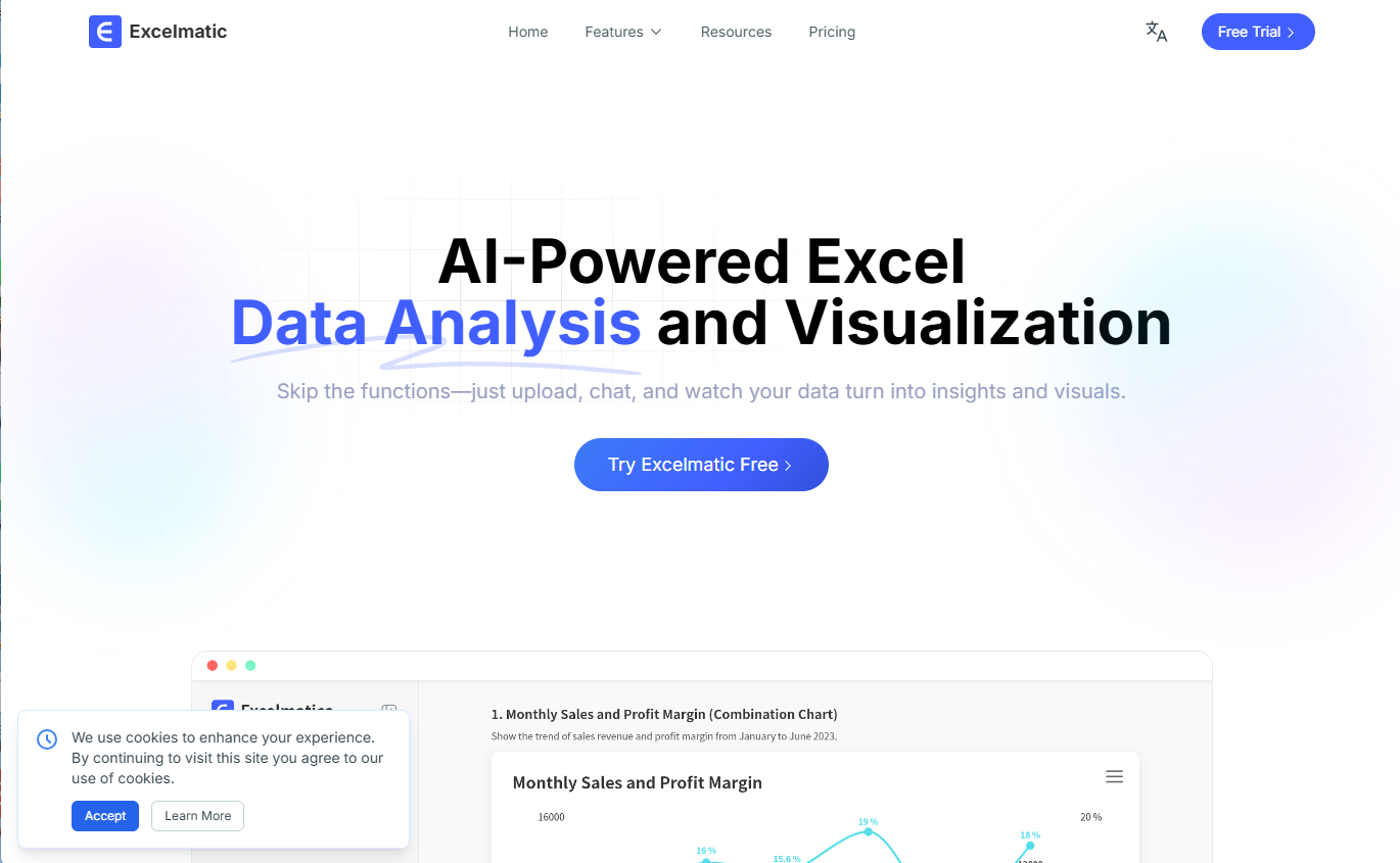 Excelmatic.ai is an AI-driven automation tool specifically designed to enhance workflows in Excel, simplifying data analysis and report generation.