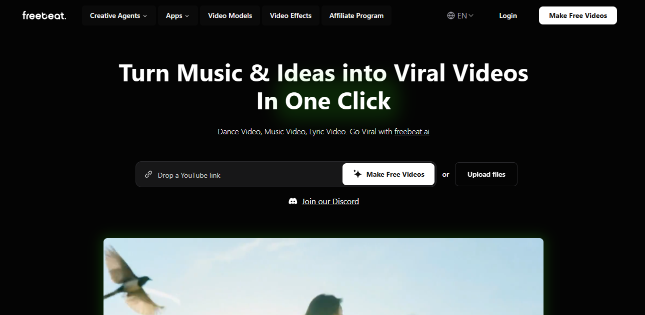 Freebeat is an AI-powered tool that transforms music and ideas into viral videos with a single click, making video creation seamless and accessible.