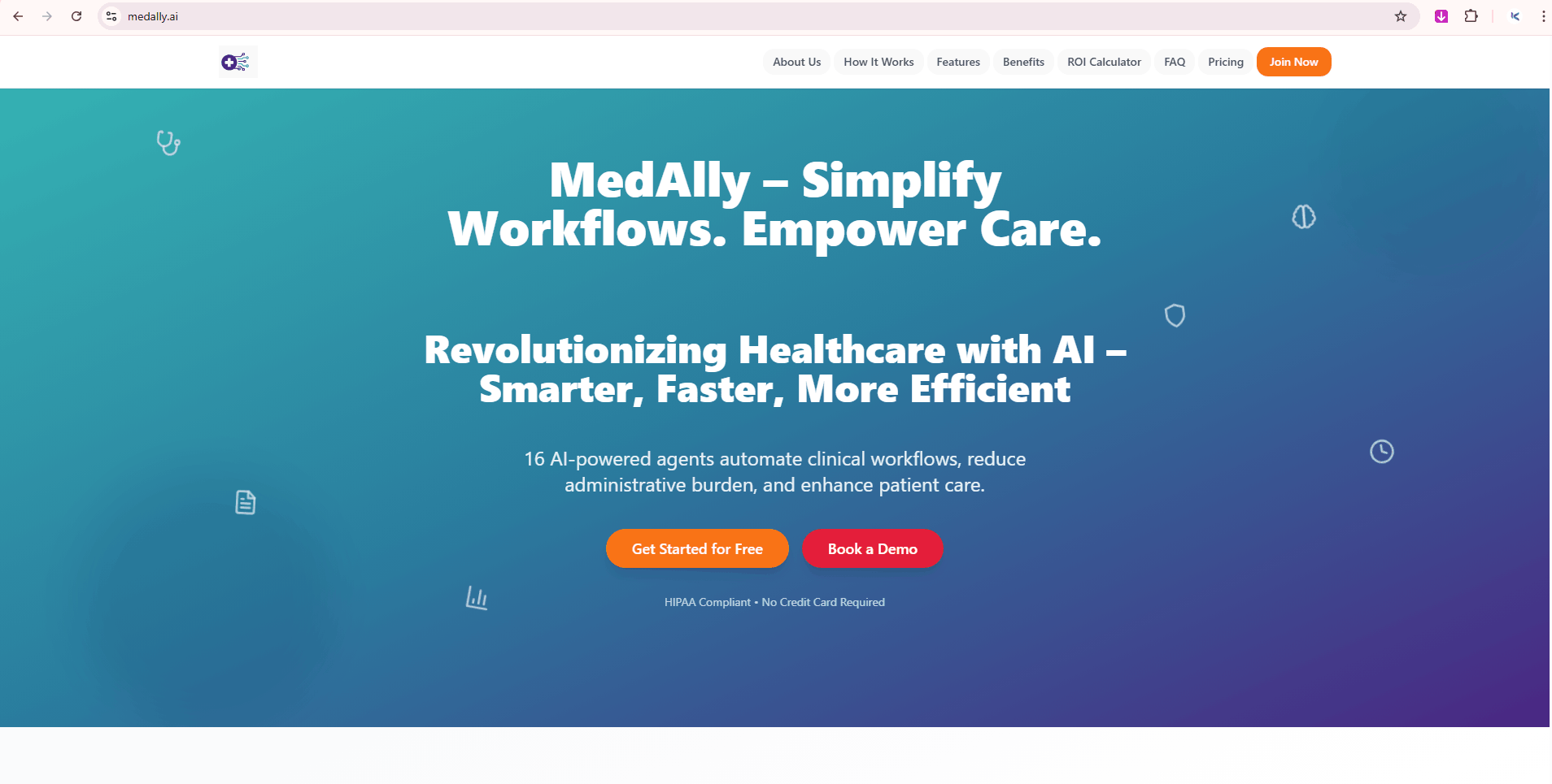 MedAlly is an AI-powered healthcare assistant that provides AI medical scribing, differential diagnosis support, and automated clinical documentation using 16 intelligent AI agents.