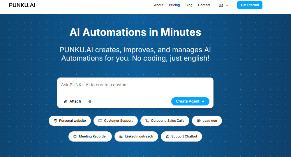 Describe what you want automated in plain English. PUNKU.AI builds, improves, and monitors your AI Automations. No coding required.