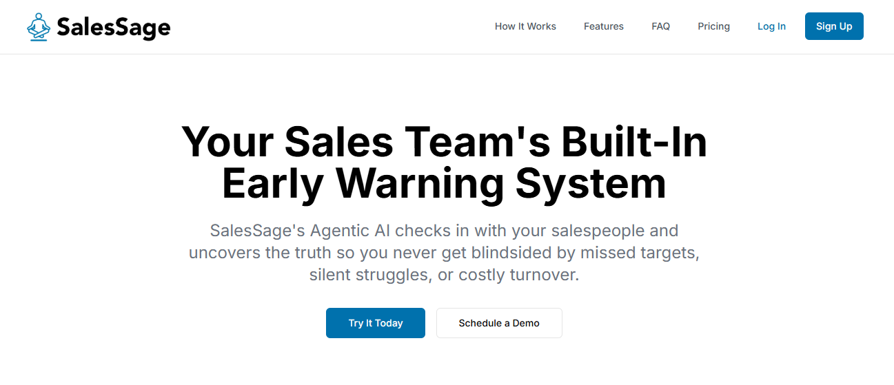 SalesSage is an AI-powered sales team intelligence that helps sales leaders surface the human signals traditional dashboards miss, revealing risk, confidence, and judgment issues early, before deals slip or quarters fall apart.