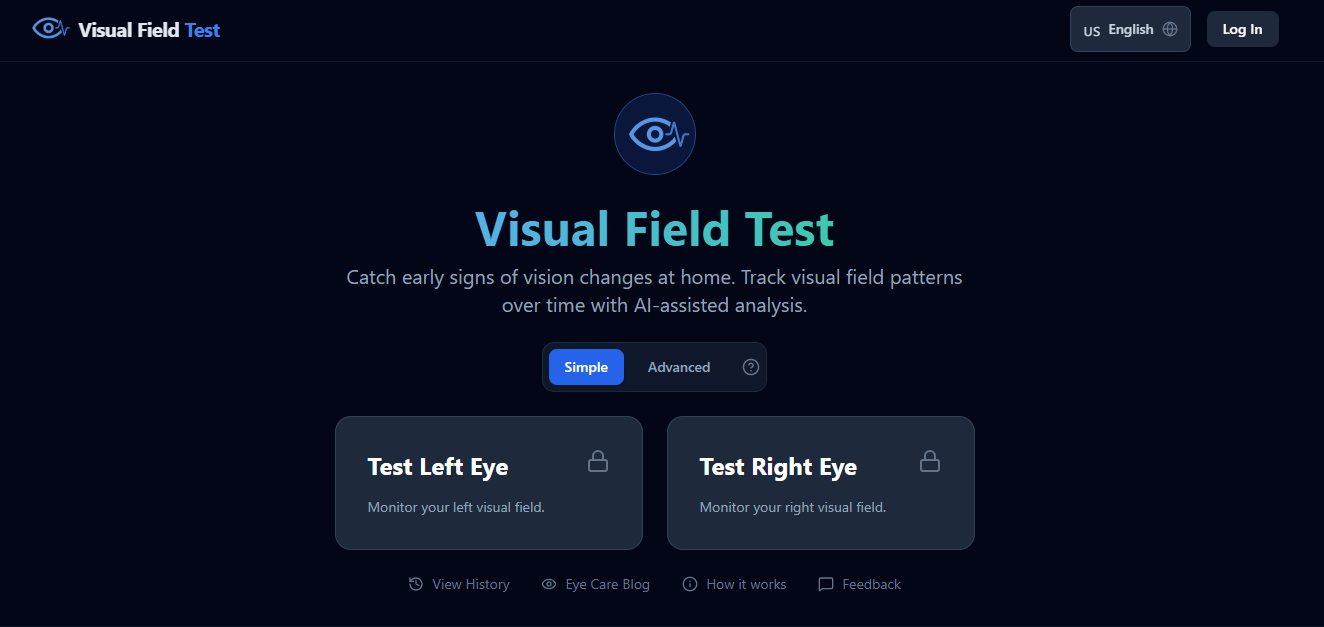 The Visual Field Test is an online tool that allows users to assess their peripheral vision and identify blind spots from home using a computer or device.